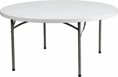 Our 60-inch round folding tables are a versatile rental choice, perfect for weddings, banquets, birthdays, and community events. Each table comfortably seats 6–8 guests, making them great for creating a welcoming, family-style atmosphere.
