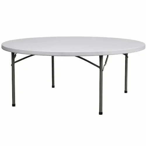 Our 72-inch grand round folding tables are the perfect rental choice for weddings, banquets, parties, and community events. Each table comfortably seats 8–10 guests, making them ideal for creating a welcoming, family-style atmosphere.